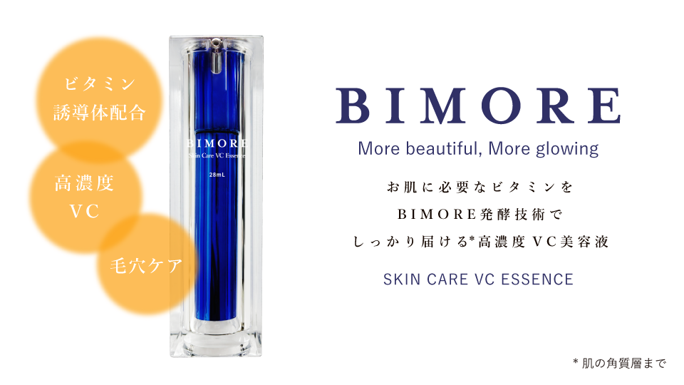 秋冬でも取り入れやすいアイテムとして、発酵ビタミン美容液「BIMORE」の 「スキンケアVCエッセンス」がおすすめです。独自の処方と発酵技術によって必要なビタミンを安定的に肌に届ける*2ことで、キメ・毛穴を整え、明るく澄んだ印象の肌を目指せます。