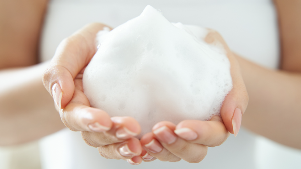 必要以上に皮脂を落としすぎないよう、低刺激の洗顔料を選びましょう。ゴシゴシ擦ったり、長時間洗顔料を肌に乗せ続けたりするのはNG。しっかり泡立てた状態でやさしく泡で洗うことを心がけましょう。少しひんやり感じるくらいのぬるま湯でやさしく洗い流すこともポイントです。