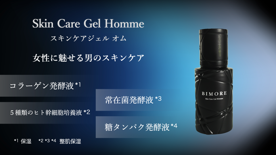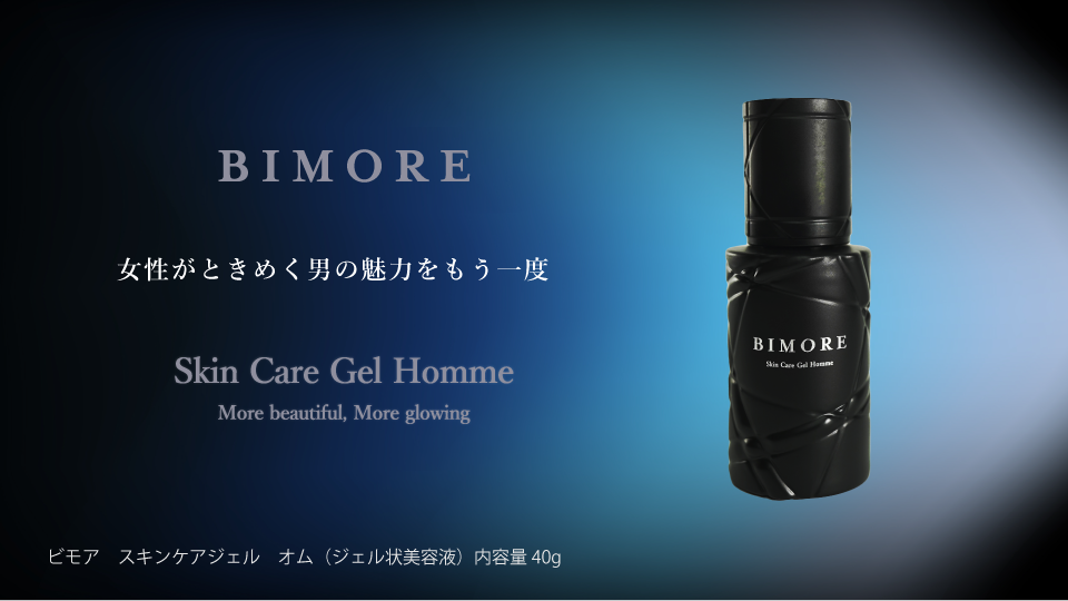 「ビモア スキンケアジェル オム」は、うるおいを与え、ハリのある若々しい肌へと導くジェル状美容液です。これ1本で、水分と油分のバランスを整え、テカリや乾燥といった男性の肌悩みに アプローチします。